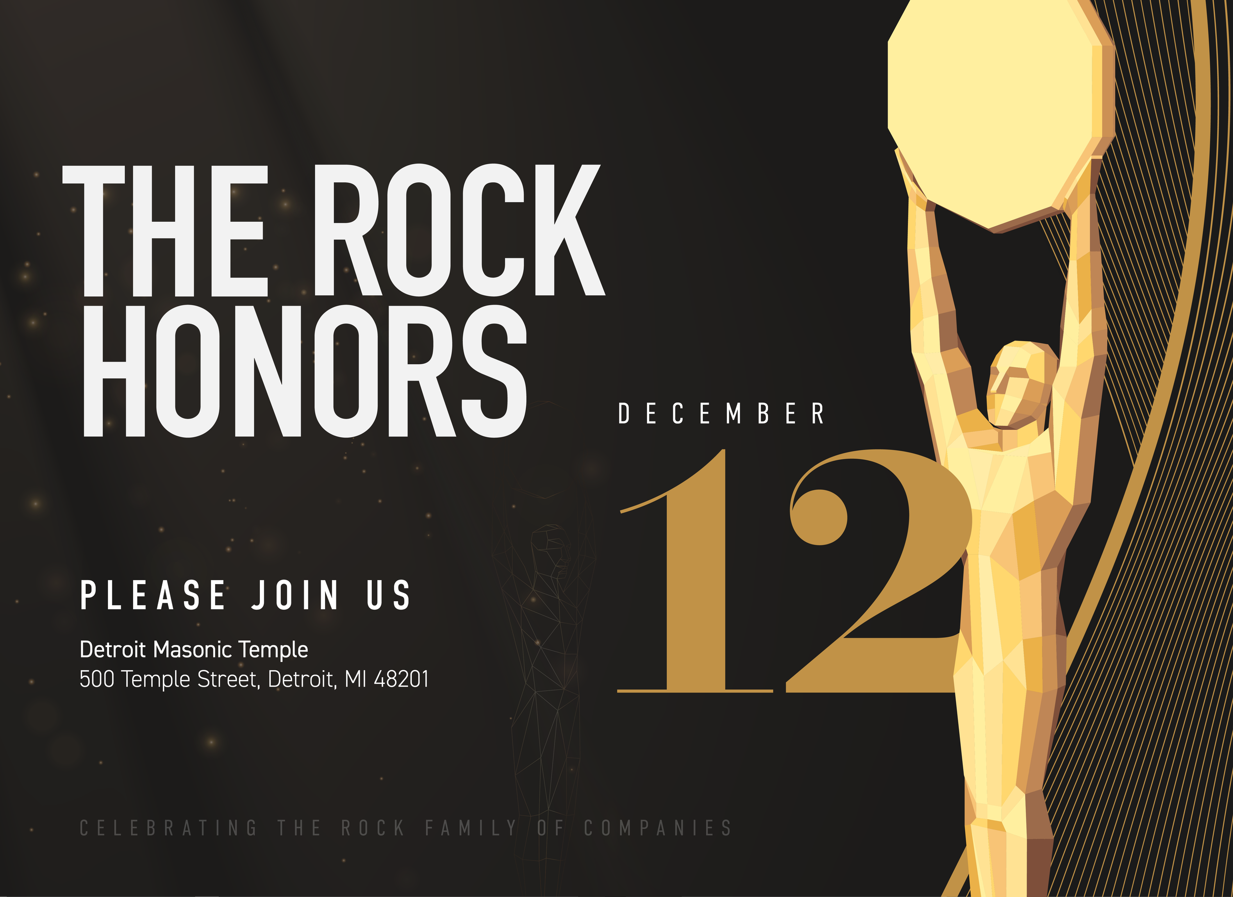about: the rock honors is an event that celebrates the achievements of top performing employees throughout the Rocket family of companies. this event took place at the detroit masonic temple. i was responsible for conceptual ideation and execution of print and digital graphic assets for the event.